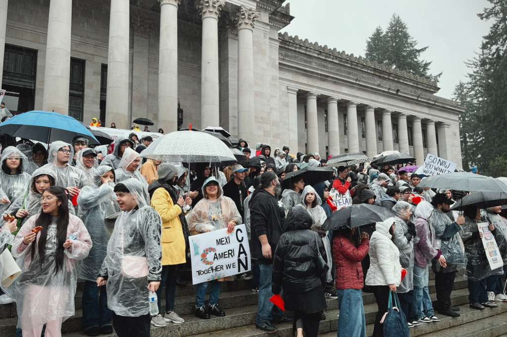 El activista contó que decenas de simpatizantes acudieron a la reunión a pesar de la constante lluvia. “Caminaron de Capitol Way South a las escalinatas del Palacio Legislativo, portando la bandera de México y coreando en inglés y en español: El pueblo unido jamás será vencido”; en los carteles se leía Abolish ICE (Eliminen a ICE) y Immigrants built this country (Los inmigrantes construyeron este país)”.